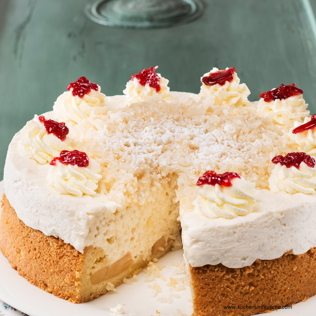 Die Torte 40–45 Minuten backen, bis sie goldbraun ist und herrlich duftet. Danach leicht abkühlen lassen.
