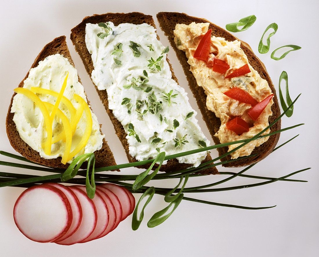 Grundlage (Basis) – sorgt für die cremige Konsistenz, z. B. Frischkäse, Hummus, Quark, Nüsse oder Avocado.