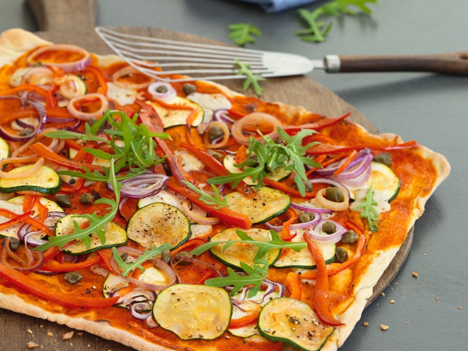 Ein vegetarischer Flammkuchen ist nicht nur lecker, sondern auch ernährungsphysiologisch sinnvoll: