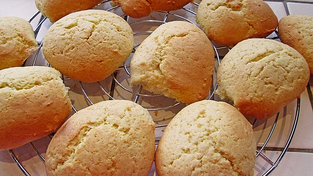Backe sie ca. 12â15 Minuten, bis sie goldgelb sind. Sie dĂŒrfen ruhig etwas heller bleiben â so bleiben sie schön saftig. AnschlieĂend auf einem Kuchengitter auskĂŒhlen lassen.
