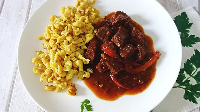 Knöpfle stammen ursprünglich aus dem Allgäu und aus Vorarlberg, wo sie traditionell als Beilage zu deftigen Fleischgerichten wie Gulasch, Braten oder Rahmgeschnetzeltem serviert werden. Der Name „Knöpfle“ leitet sich übrigens von der Form ab – kleine Knöpfe aus Teig, die durch ein Sieb oder eine spezielle Knöpfle-Reibe direkt ins kochende Wasser gedrückt werden.