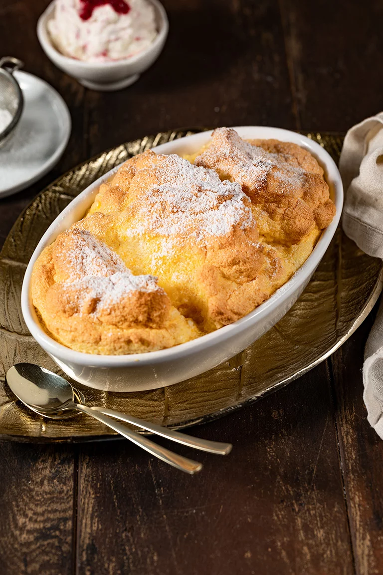 Das Besondere: Dieses Dessert wird frisch aus dem Ofen serviert, mit Puderzucker bestäubt und meist von fruchtigen Beilagen wie Preiselbeeren oder Vanillesauce begleitet. Kein Wunder, dass viele sagen: „Ein Hauch von Himmel auf dem Teller.“