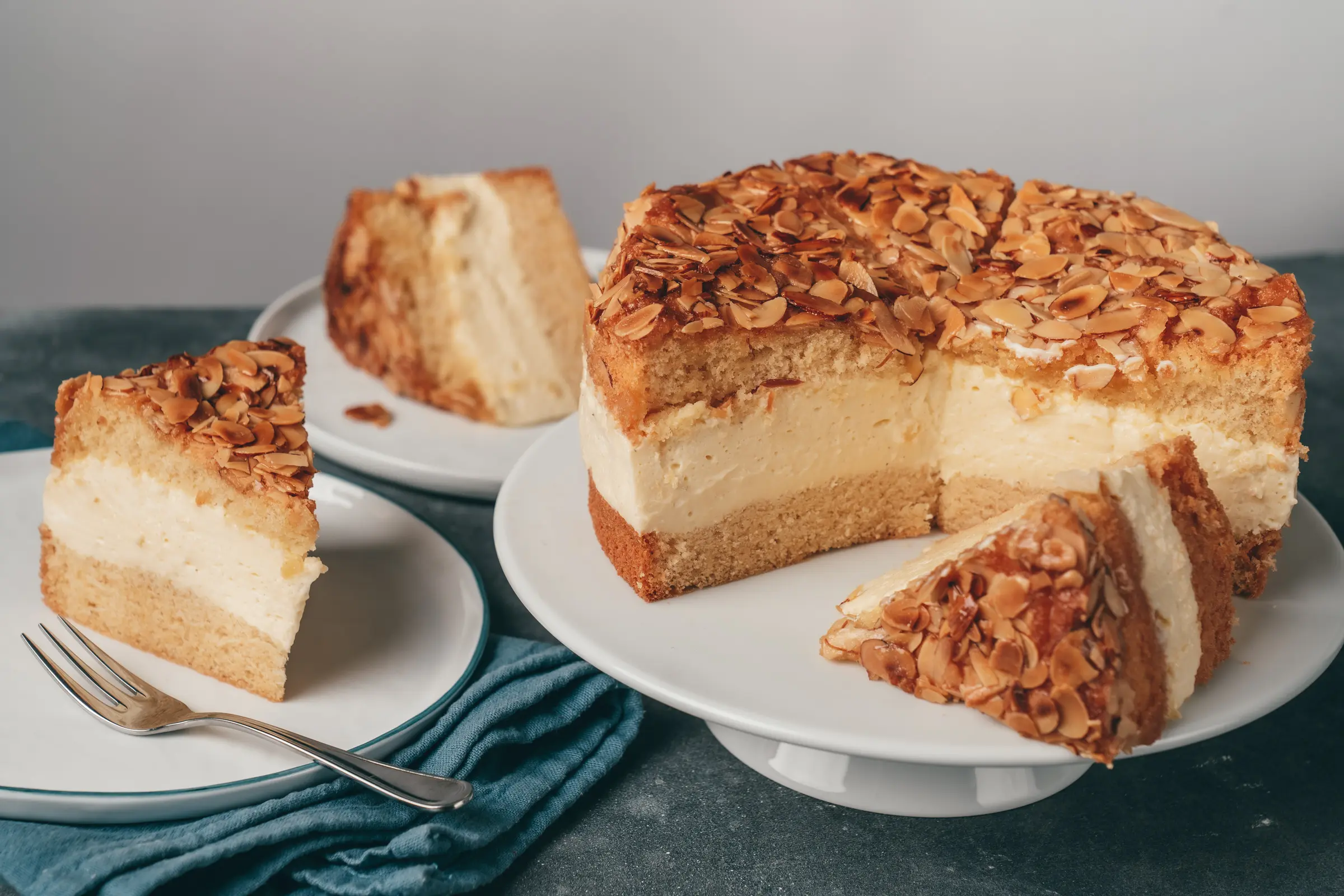 Frisch servieren: Direkt aus dem Kühlschrank schmeckt der Bienenstich am besten – kühl und cremig.