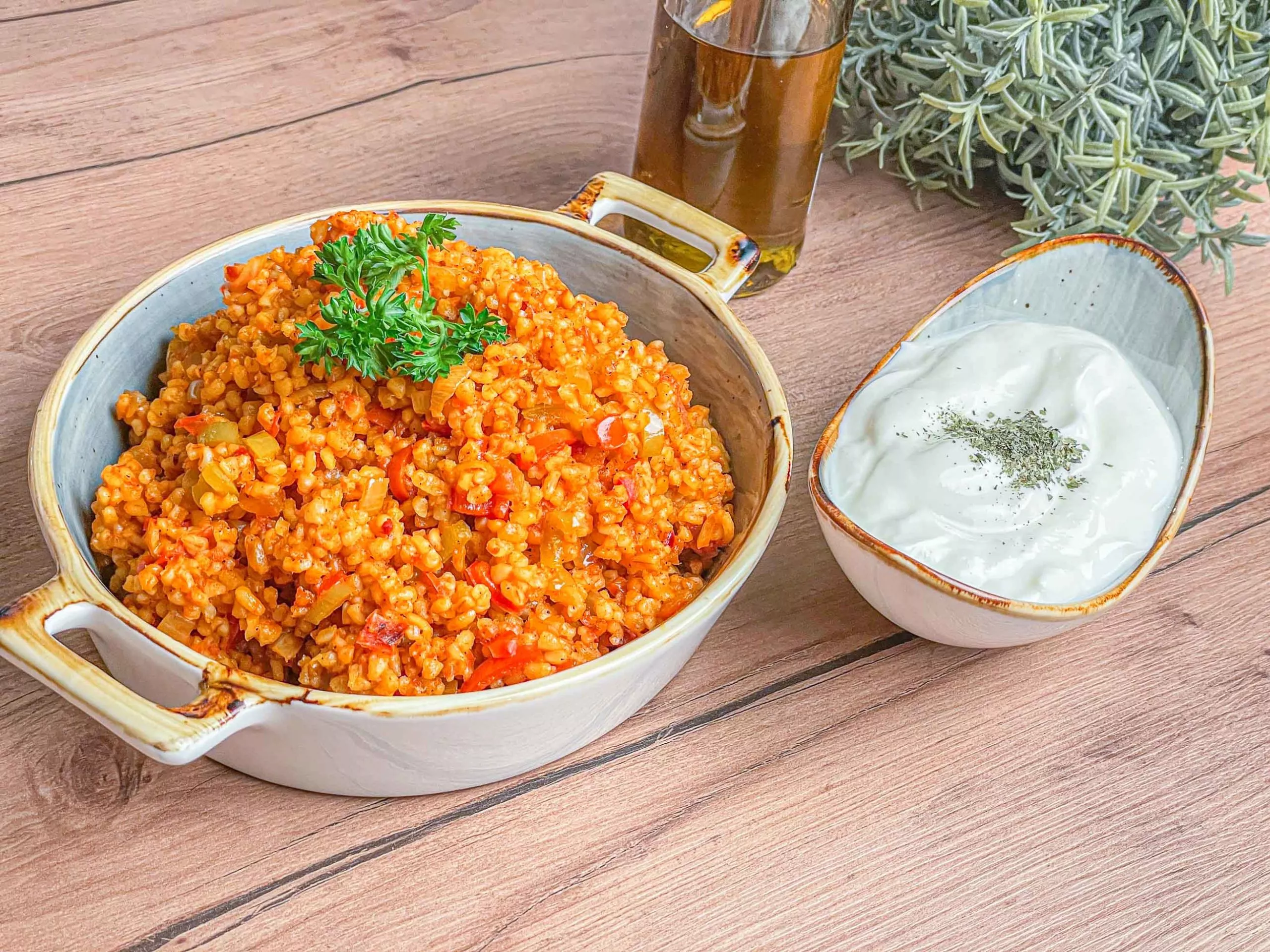 Geschmack intensivieren: Röste den Bulgur vor dem Kochen kurz in Olivenöl an – das bringt ein herrlich nussiges Aroma.