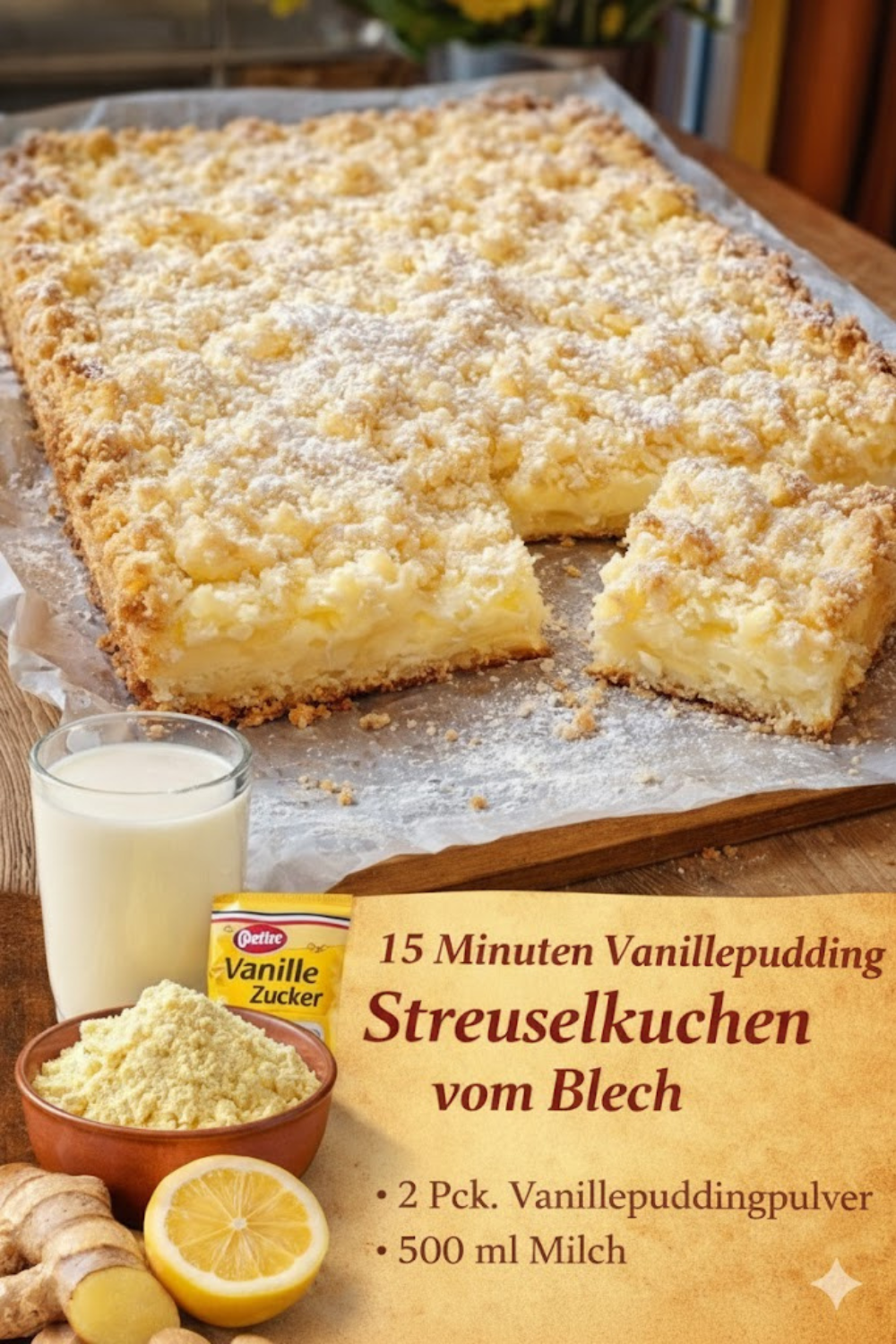 H2: Zutaten für 15 Minuten Vanillepudding Streuselkuchen vom Blech