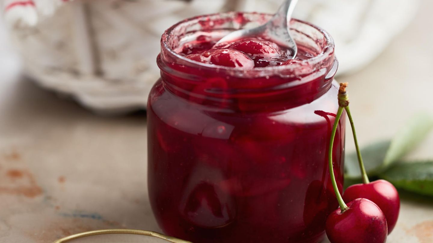 Gelee glätten: Erwärme das Gelee kurz und rühre es glatt, damit es sich leichter verstreichen lässt.