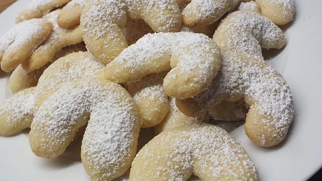 Vanillekipferl oder Butterplätzchen als Ergänzung auf dem Teller