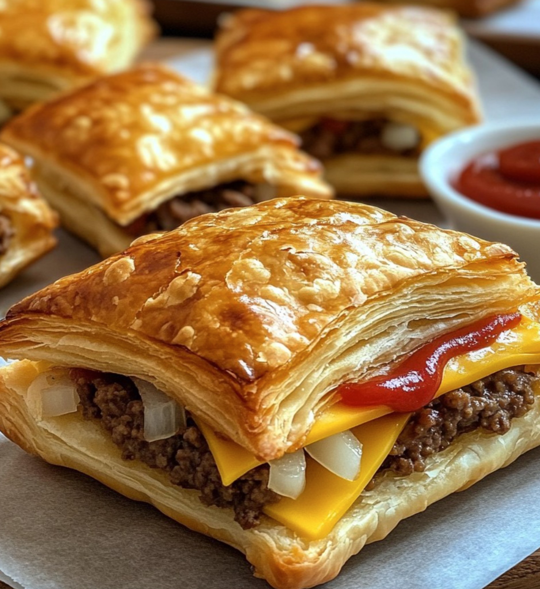 Cheeseburger-Blätterteigtaschen, Knusprig, käsig, einfach genia
