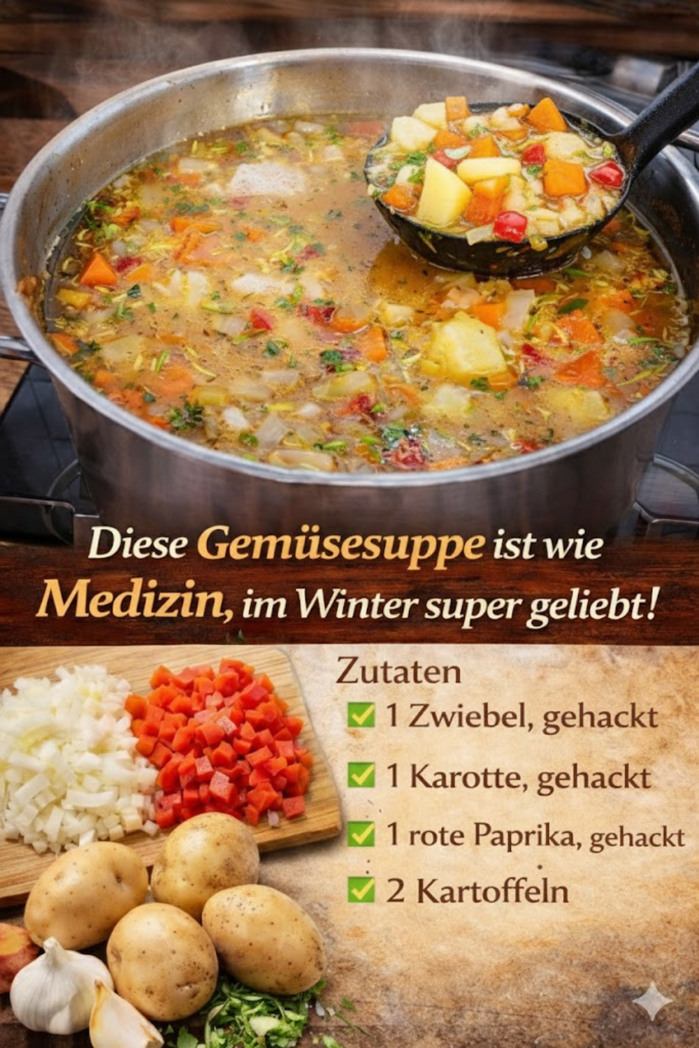 Der Winter kann oft hart sein: kalte Temperaturen, trübes Wetter und ein geschwächtes Immunsystem. Genau in dieser Zeit sehnen wir uns nach wärmenden, nahrhaften Gerichten, die Körper und Seele guttun. Eine Gemüsesuppe mit Kartoffel ist dabei nicht nur lecker, sondern wirkt wie kleine Medizin – sie wärmt von innen, stärkt die Abwehrkräfte und versorgt uns mit wichtigen Vitaminen. In Kombination mit deftigen Beilagen wie Bouletten mit Champignon-Waldpilzsoße & Kartoffeln wird das Winteressen zu einem vollwertigen Genuss, der satt macht und glücklich.