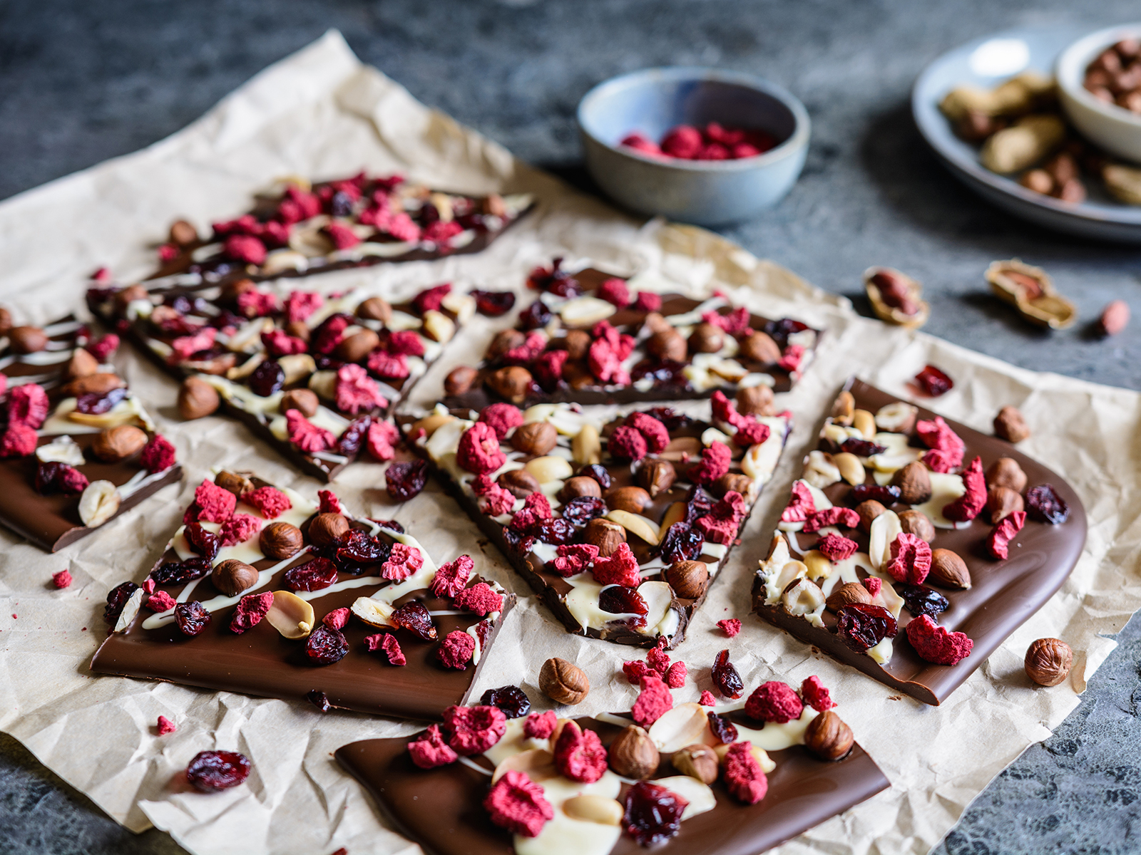 Das Beste daran: Jede Tafel ist ein Unikat! Du entscheidest selbst, ob deine Bruchschokolade edel, fruchtig, bunt oder weihnachtlich werden soll.