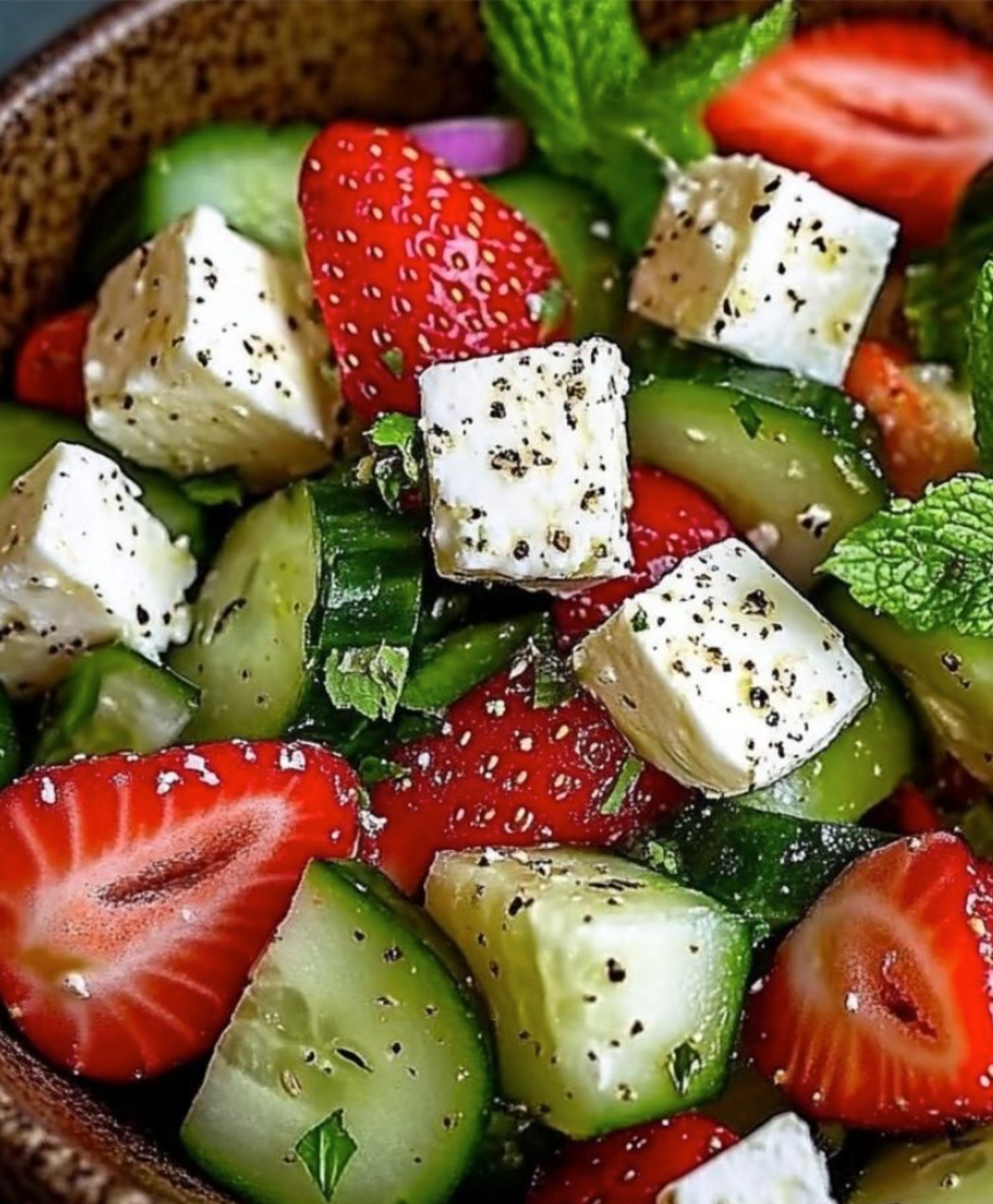Der Erdbeer-Gurken-Salat mit Minze & Feta, frisch, frech & voller Sommerlaune ist nicht einfach ein gewöhnlicher Salat. Er vereint mehrere Aspekte, die ihn zu einem Lieblingsgericht machen: