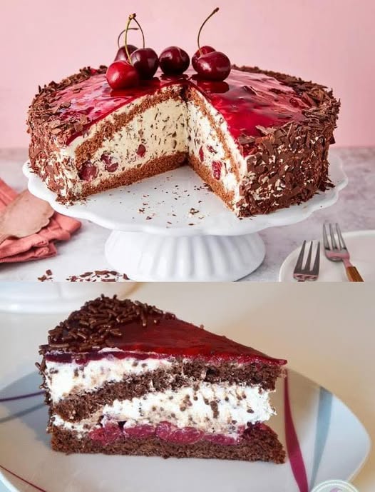 Stracciatella-Kirsch-Torte mit Schokobiskuit und Sahnecreme ist so lecker