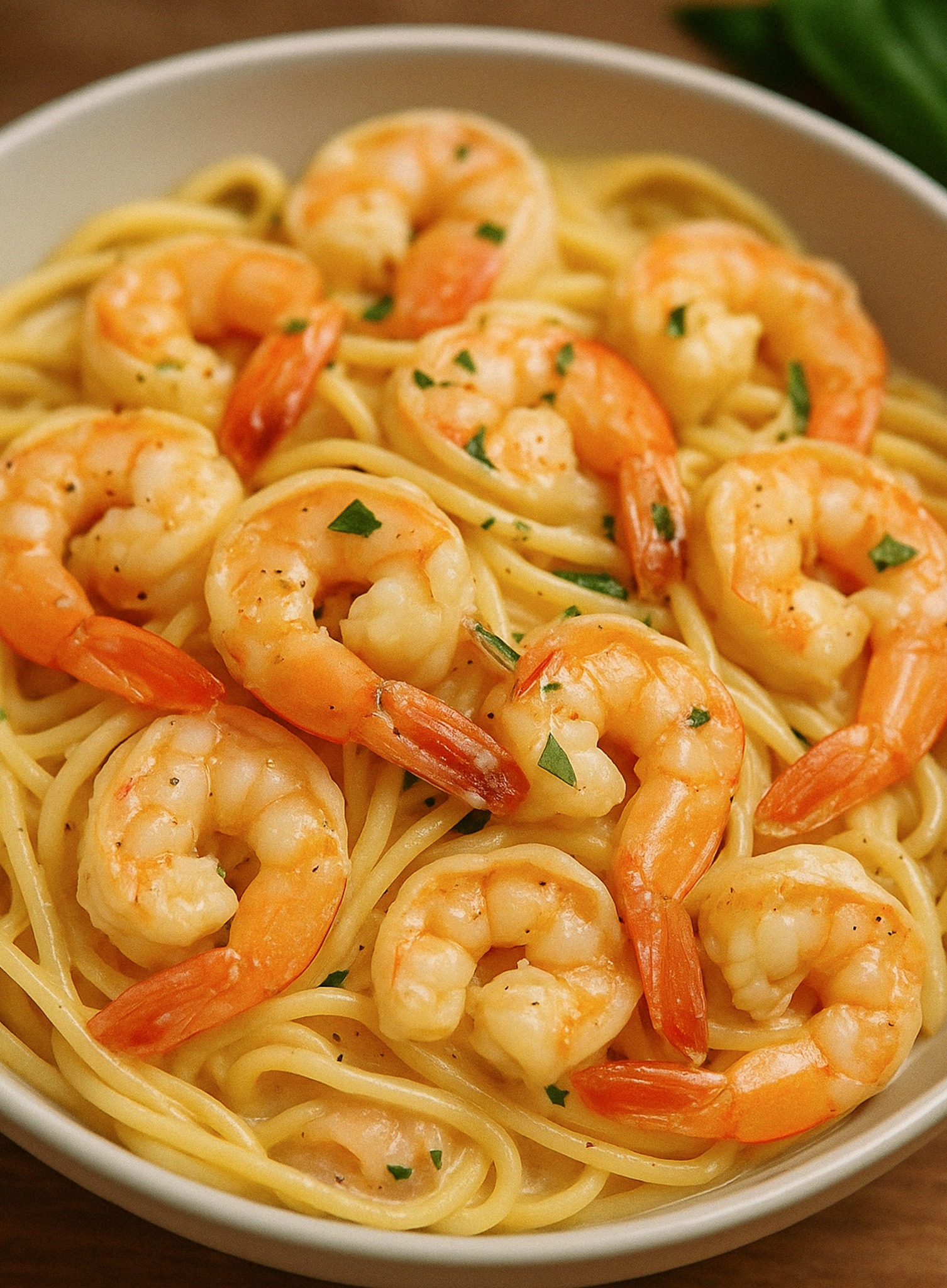 Garnelen-Spaghetti in Knoblauch-Frischkäsesauce zeichnen sich durch die perfekte Kombination aus cremiger Textur und frischem Meeresgeschmack aus. Die Garnelen liefern hochwertige Proteine und einen feinen, leicht süßlichen Geschmack, der hervorragend mit der sahnigen, leicht säuerlichen Frischkäsesauce harmoniert. Der Knoblauch sorgt für die nötige Würze und das aromatische Highlight, das jeden Bissen unvergesslich macht.