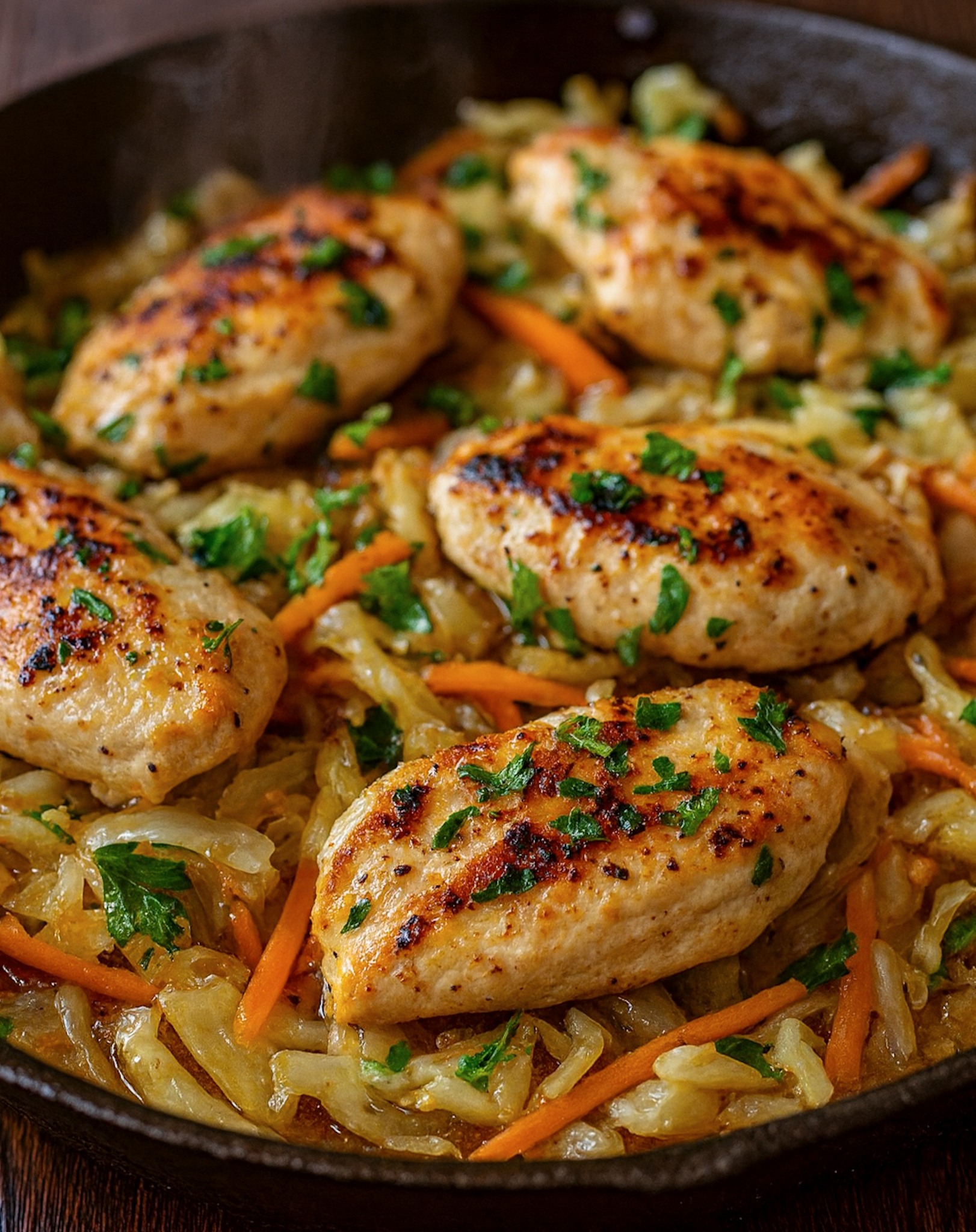 Hähnchenpfanne mit Weißkohl einfach, gesund und voller Geschmack