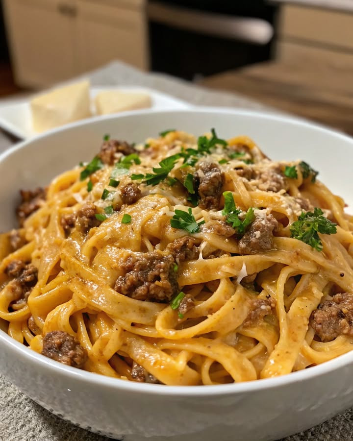 Herzhafter Rindfleisch- und Knoblauchbutter-Linguine in Parmesancreme ist mehr als nur ein Pastagericht – es ist ein Fest der Aromen. Die Kombination aus zartem Rindfleisch, samtiger Parmesancreme und duftender Knoblauchbutter sorgt für puren Genuss.