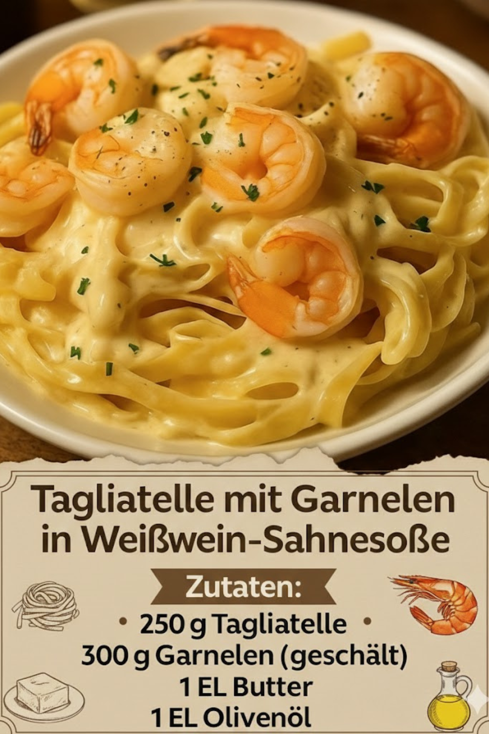 Italienischer Genuss: Tagliatelle mit saftigen Garnelen & feiner Weißwein-Sahnesoße
