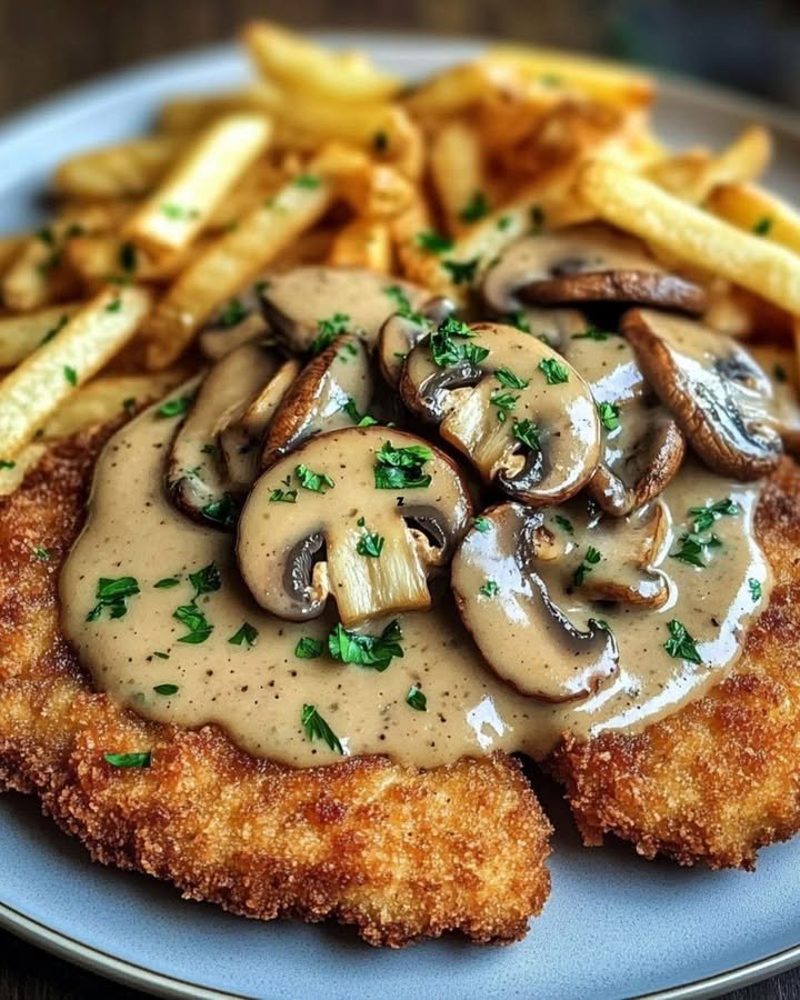 Das Jägerschnitzel ist ein paniertes oder unpaniertes Schnitzel, das traditionell mit einer kräftigen Jägersoße aus Pilzen, Zwiebeln und Sahne oder Brühe serviert wird. Der Name „Jägerschnitzel“ leitet sich vom typischen „Jägergeschmack“ der Soße ab – herzhaft, würzig und waldig durch die Verwendung von Champignons oder anderen Pilzsorten.