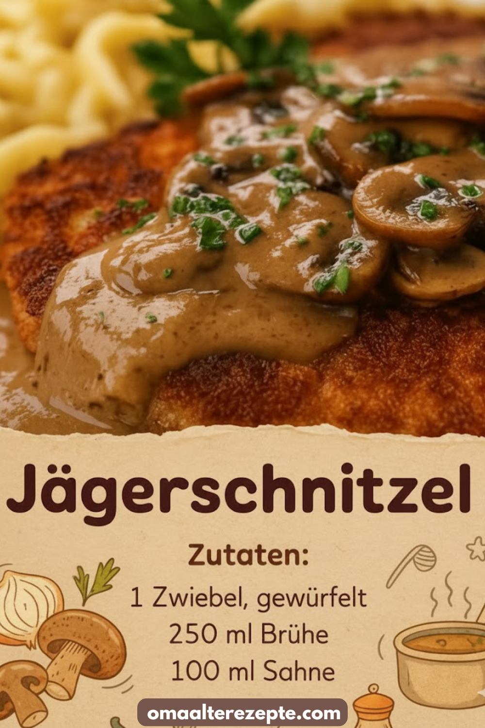 Die Bezeichnung „Jäger“ kommt nicht von ungefähr: Traditionell ergänzt eine Pilzsoße das Gericht, da Pilze früher vor allem von Jägern in Wäldern gesammelt wurden. Die Soße ist meist cremig, herzhaft und aromatisch – ein perfekter Kontrast zur knusprigen Kruste des Schnitzels.