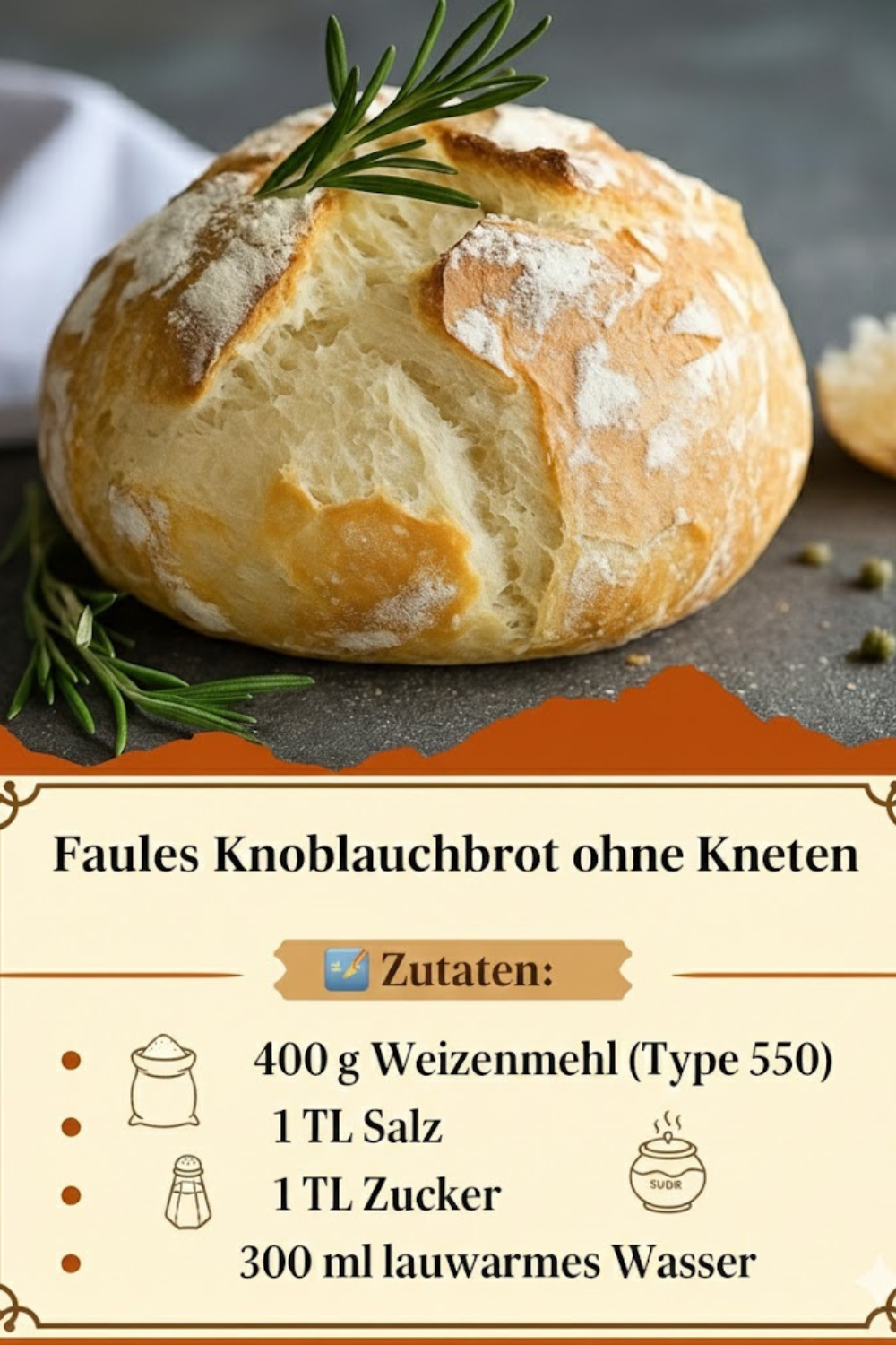 Keywords noch einmal natürlich eingebaut: „Knuspriges Knoblauchbrot für Faule kein Kneten, null Stress, maximaler Genuss“ – perfekt für alle, die Genuss ohne Aufwand lieben.
