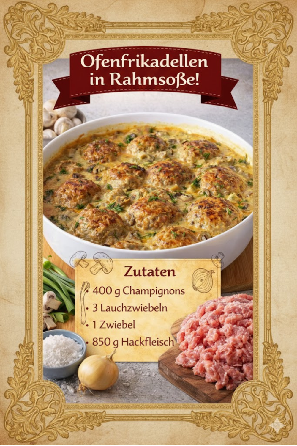 Schritt-für-Schritt: So gelingen Ofenfrikadellen in Champignon Rahmsoße