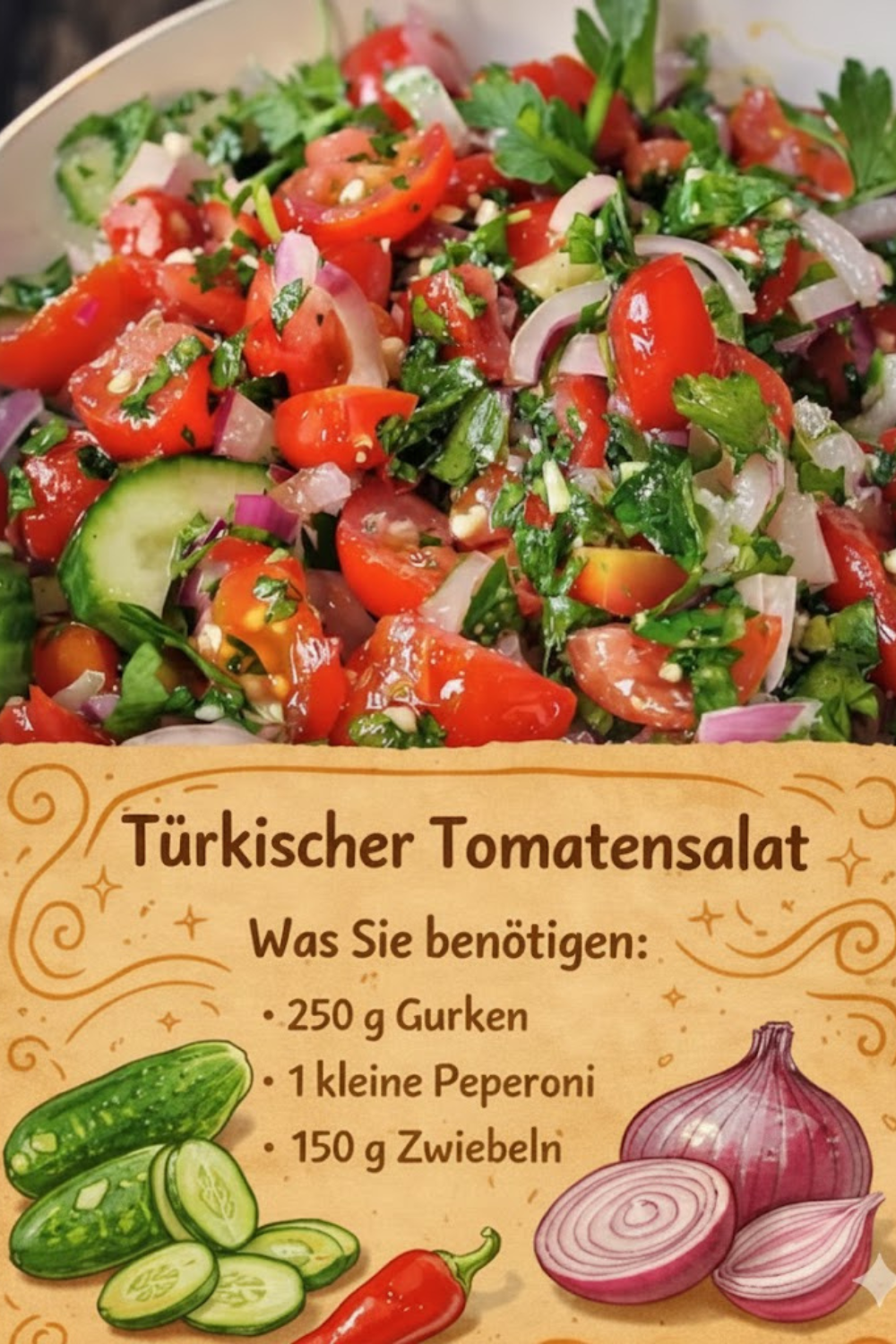Türkische Tomatensalat ist so frisch, saftig und aromatisch