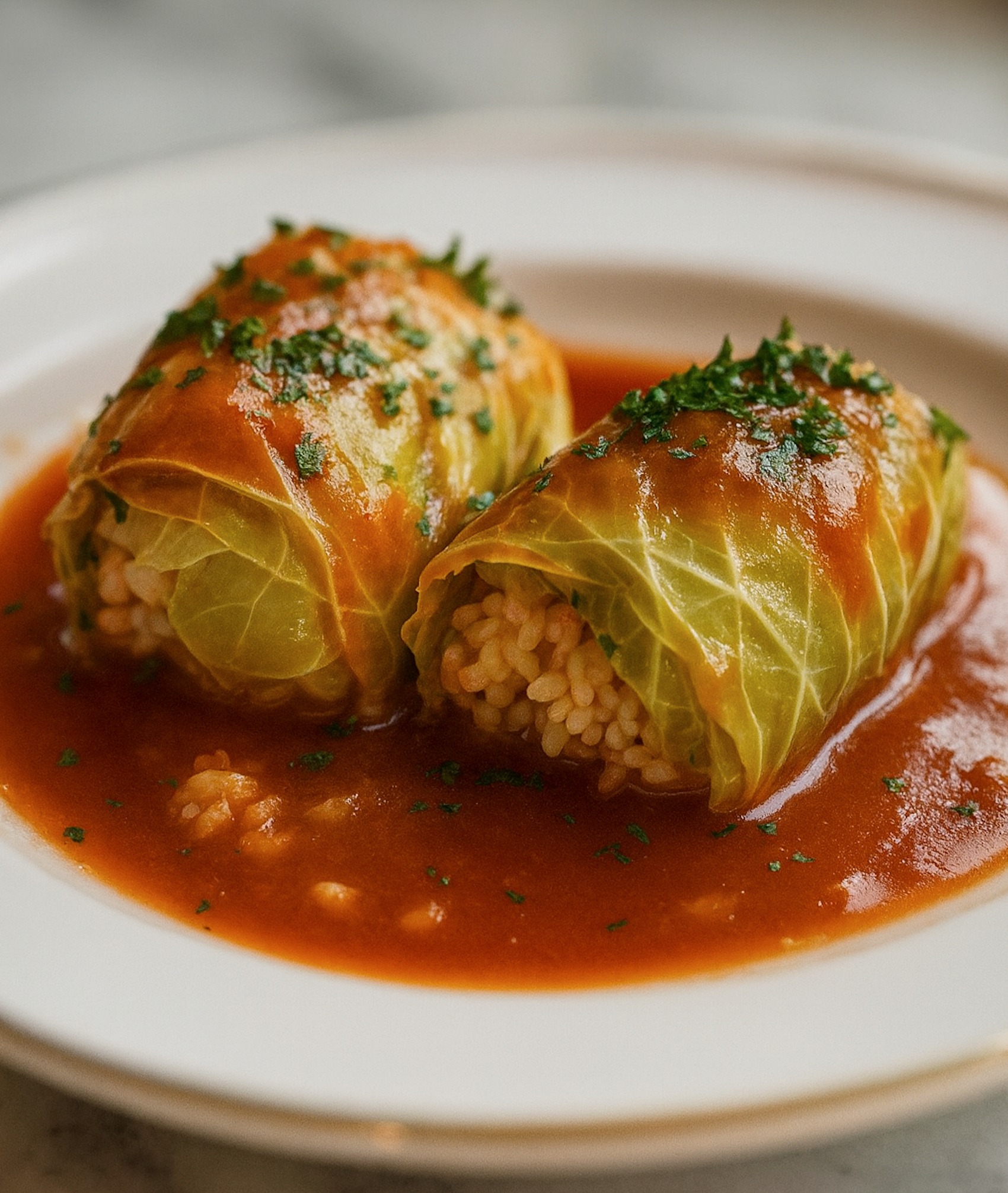 Die Soße ist das Herzstück der Polnischen Gołąbki zarten Kohlrouladen gefüllt mit Reis und Fleisch, in Tomatensoße geköchelt. Sie sorgt dafür, dass die Rouladen saftig bleiben und einen intensiven Geschmack entwickeln.