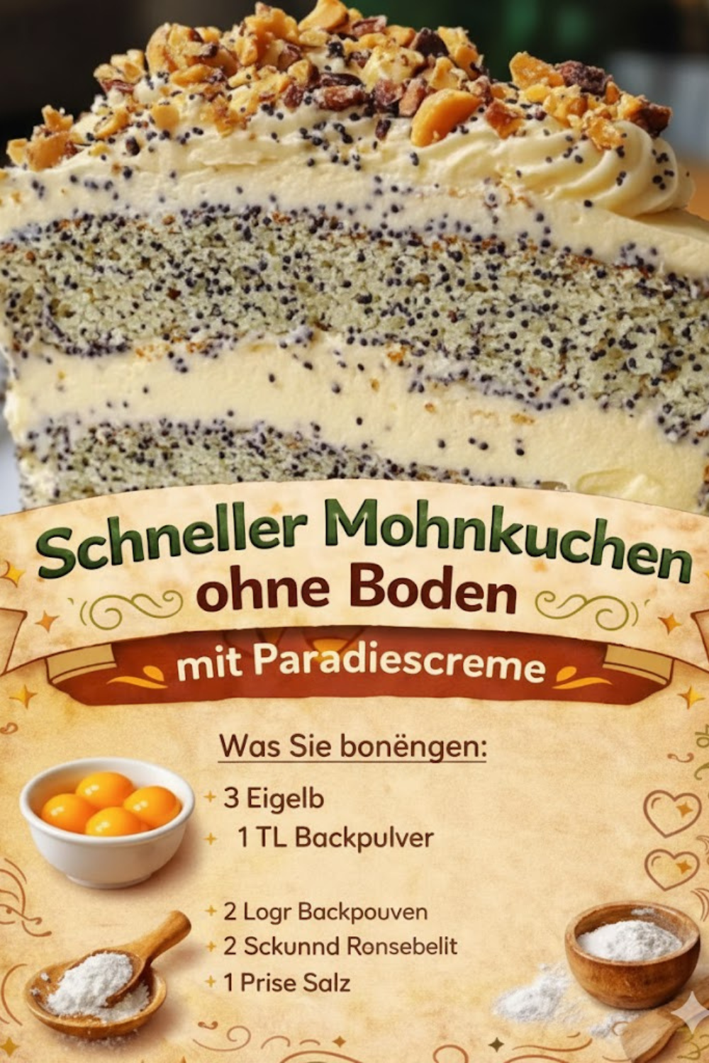 Wer auf der Suche nach einem schnellen, unkomplizierten Dessert ist, wird diesen schnellen Mohnkuchen ohne Boden mit Paradiescreme, saftig und einfach himmlisch leicht lieben. Er vereint den intensiven Geschmack von Mohn mit der fluffigen, cremigen Textur der Paradiescreme und ist dabei überraschend einfach zuzubereiten. Ob für den spontanen Kaffeeklatsch, Geburtstagsfeiern oder einfach als süße Belohnung zwischendurch – dieser Kuchen begeistert Groß und Klein.